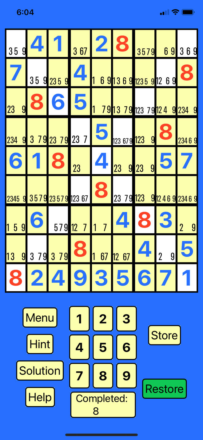 This version of the Sudoku game is intended for the advanced player.